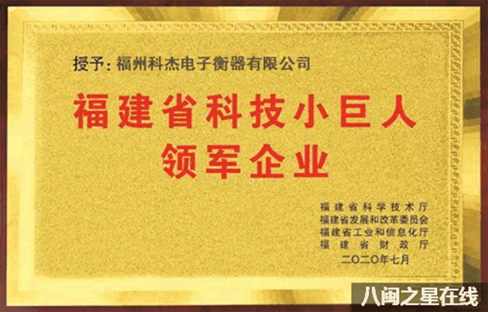 福州科杰電子衡器有限公司榮獲 2020年福建省科技小巨人領軍企業等榮譽稱號